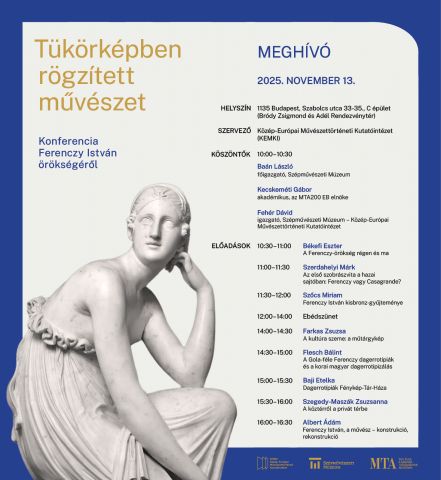 Egynapos konferenciát rendez Ferenczy Istvánról a Szépművészeti Múzeum – Közép-Európai Művészettörténeti Kutatóintézet Archívum és Dokumentációs Központ, amelynek során a KEMKI ADK gyűjteményének egyik legfontosabb tárgyegyüttesének, a Ferenczy István megsemmisítés előtt álló műtárgyairól Gola Adolf által készített dagerrotípiasorozat különböző rétegeit tárják fel a meghívott előadók. A fotótörténeti jelentőségű emlék muzeológiai, gyűjteménytörténeti, művészet-, fotó- és technikatörténeti aspektusai, valamint kortárs művészeti relevanciája áll az esemény fókuszában.